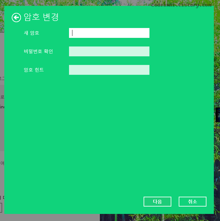 ▲ 새 암호와 암호 힌트를 입력합니다.