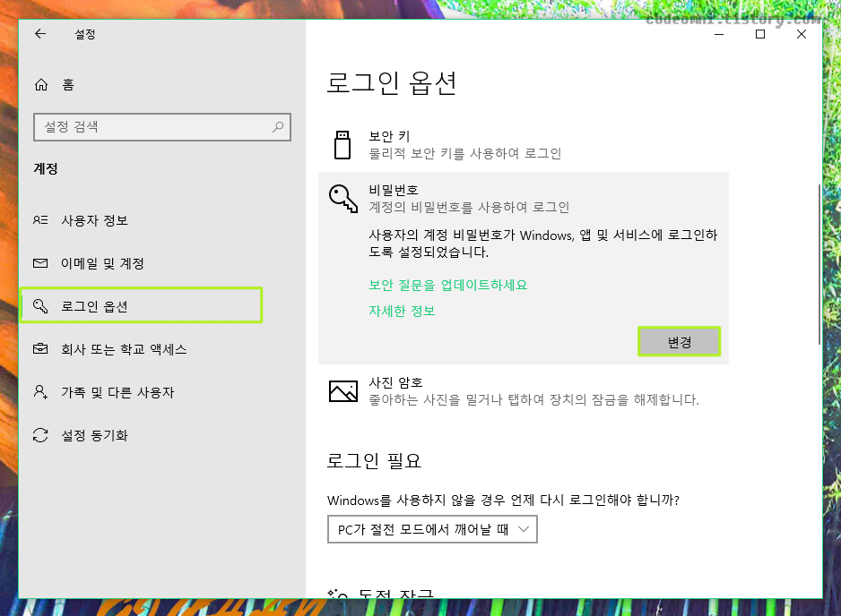 이번 포스팅은 윈도우10에서 계정 비밀번호 변경하기입니다.