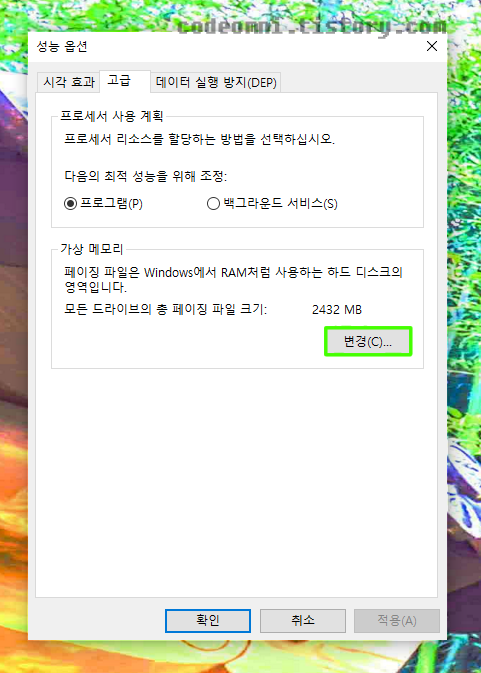 이번 포스팅은 윈도우10 에서 가상 메모리 용량 변경하기입니다.