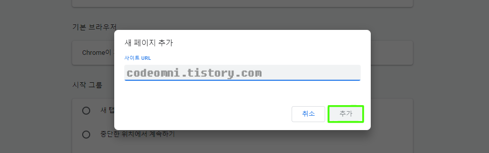 ▲ 홈페이지로 지정하고 싶은 페이지를 추가합니다.