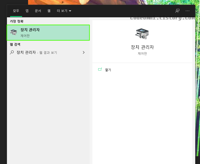 ▲ 장치 관리자를 검색 후 클릭합니다.