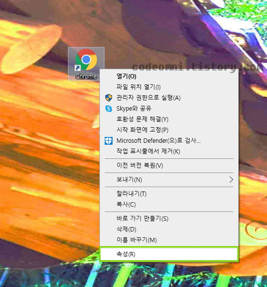 ▲ 바로 가기 탭에서 바로 가기 키(K)를 설정합니다.