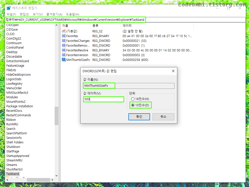▲ 값의 이름(N)은 MinThumbSizePx로 지정합니다.
