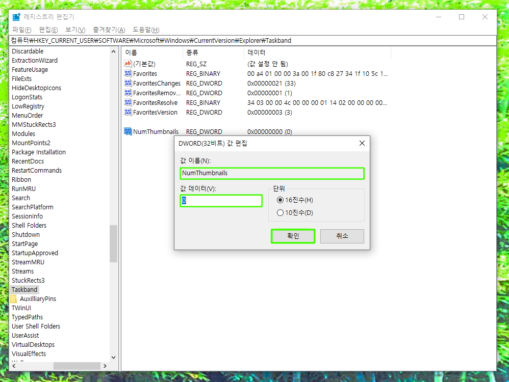 ▲ 컴퓨터\HKEY_CURRENT_USER\SOFTWARE\Microsoft\Windows\CurrentVersion\Explorer\Taskband