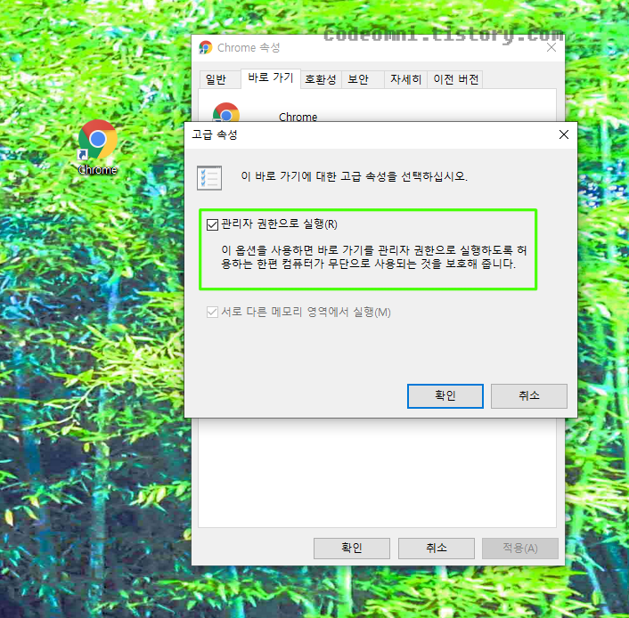 ▲ 이 옵션을 사용한면 바로 가기를 관리자 권한으로 실행하도록 허용합니다.