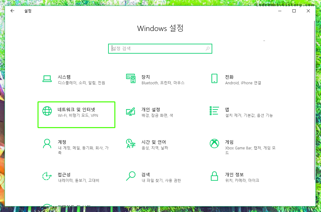 ▲ 설정에서 네트워크 및 인터넷을 클릭합니다.