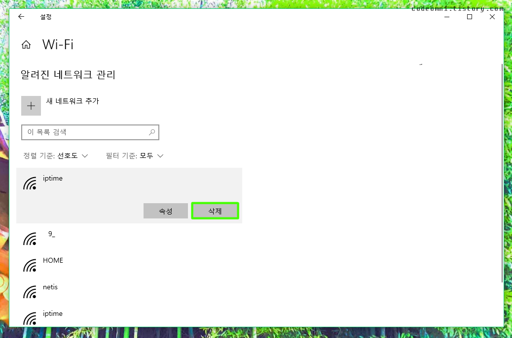 이번 포스팅은 윈도우10에서 와이파이 공유기 제거하기입니다.