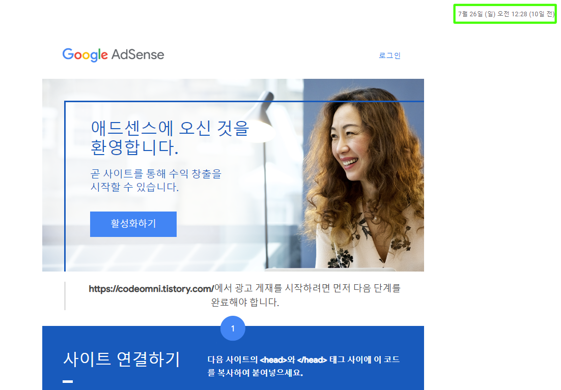 ▲ 7월 26일(일) 오전 12:28에 애드센스를 가입(신청) 했습니다.