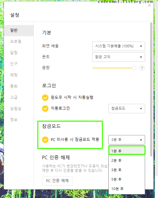 이번 포스팅은 카카오톡 PC에서 미사용 시 자동 잠금 설정하기(시간 변경 가능)입니다.