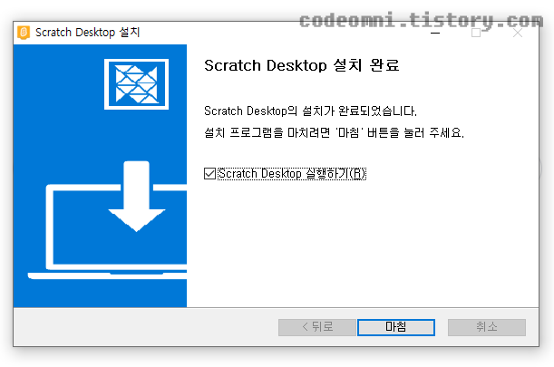 ▲ 마침 버튼을 클릭해서 스크래치를 설치합니다.
