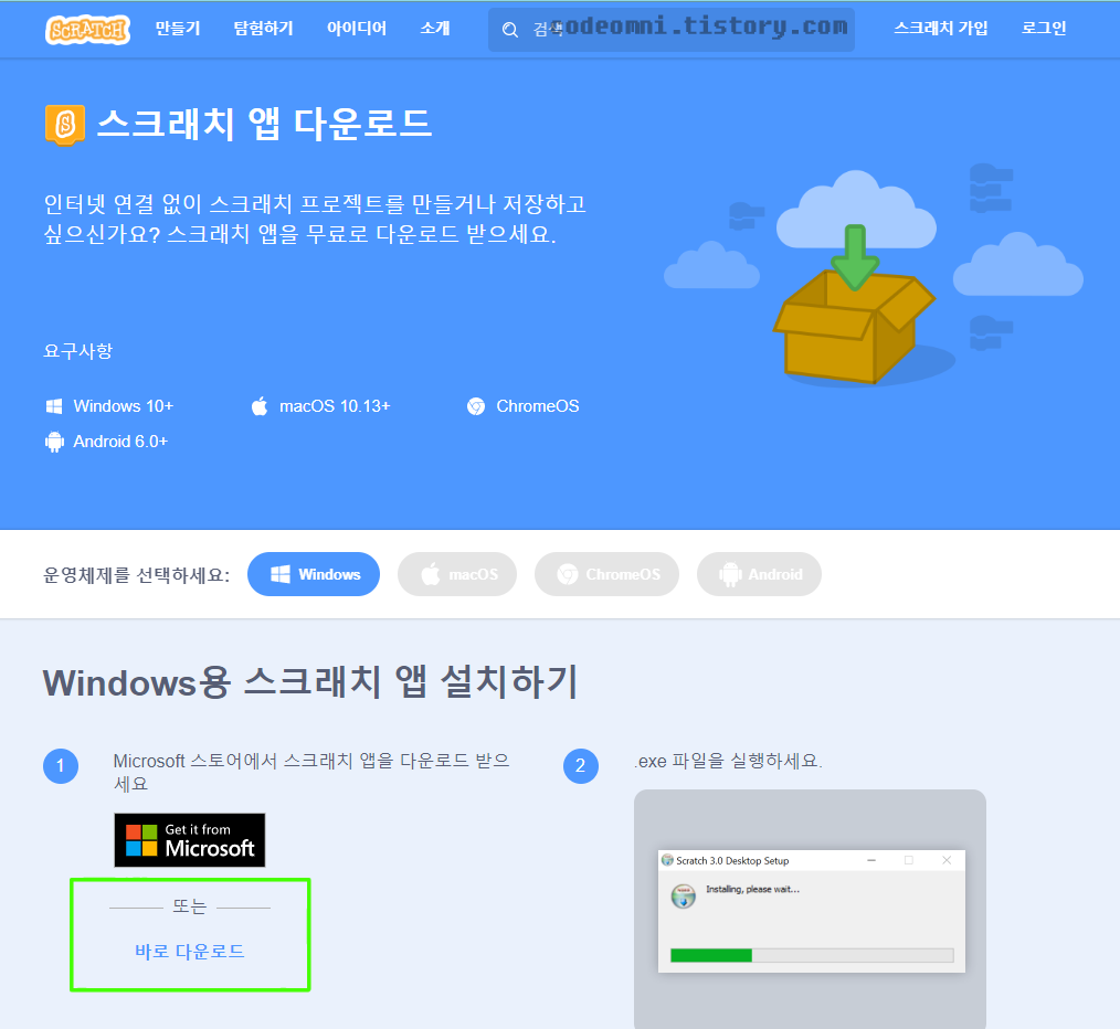 이번 포스팅은 윈도우에서 스크레치 다운로드 설치하기입니다.
