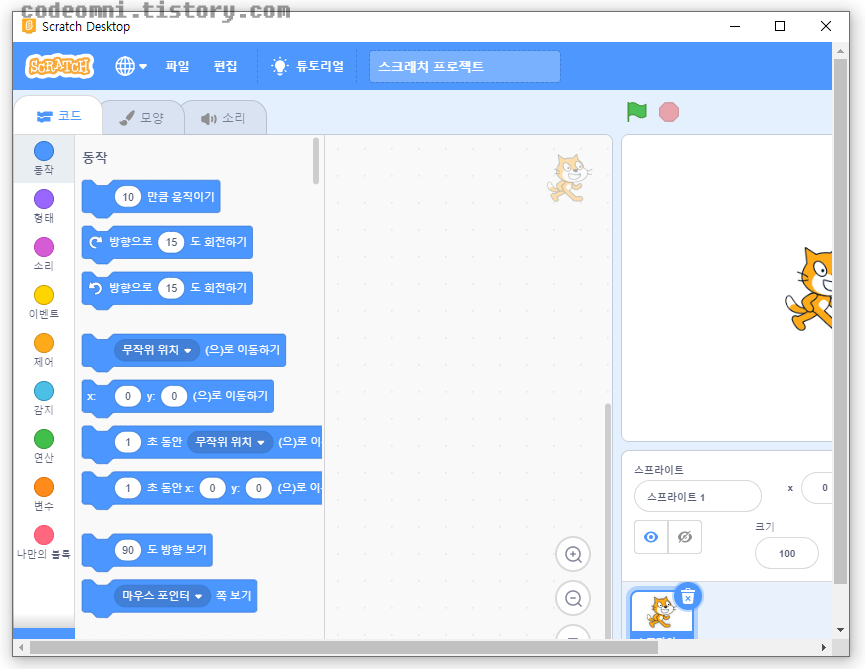 ▲ 스크레치 데스크탑을 실행한 화면입니다.