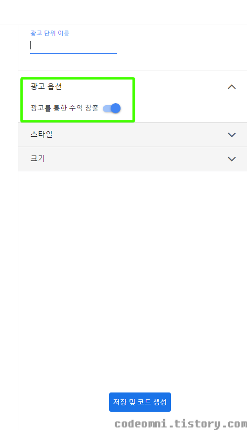 ※ 광고 옵션에서 광고를 통한 수익 창출을 클릭해야 광고도 같이 표시됩니다.
