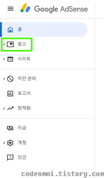 ▲ 링크에 접속 후 왼쪽 메뉴에서 광고 버튼을 클릭합니다.