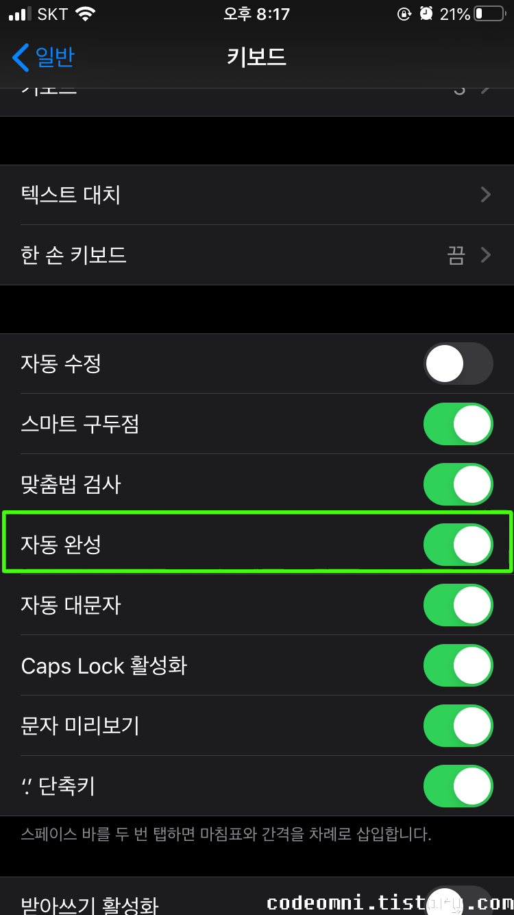 이번 포스팅은 아이폰의 자동 완성 기능 끄기/켜기입니다.