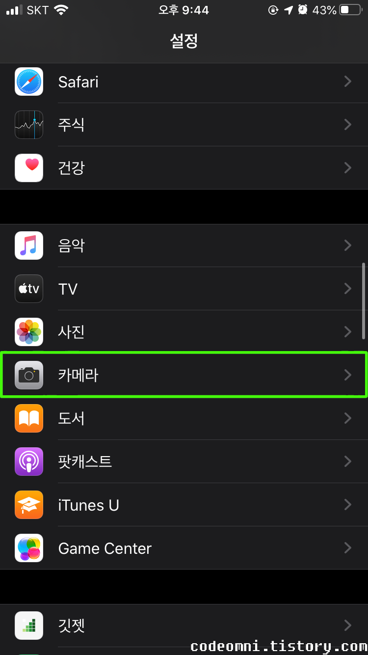 [Apple]/[i Phone] 아이폰 [i Phone] 아이폰 카메라 격자 켜기 끄기 변경 설정하기 by codeomni 2020. 8. 27. 반응형 안녕하세요. 이번 포스팅은 아이폰의 카메라 격자 끄기/켜기 설정하기입니다. 기본 카메라의 격자를 설정하는 방법입니다. ▲ 설정을 터치합니다. ▲ 카메라를 터치합니다. ▲ 격자를 터치합니다. 공유하기 게시글 관리 codeomni 저작자표시 비영리 변경금지 (새창열림) 댓글