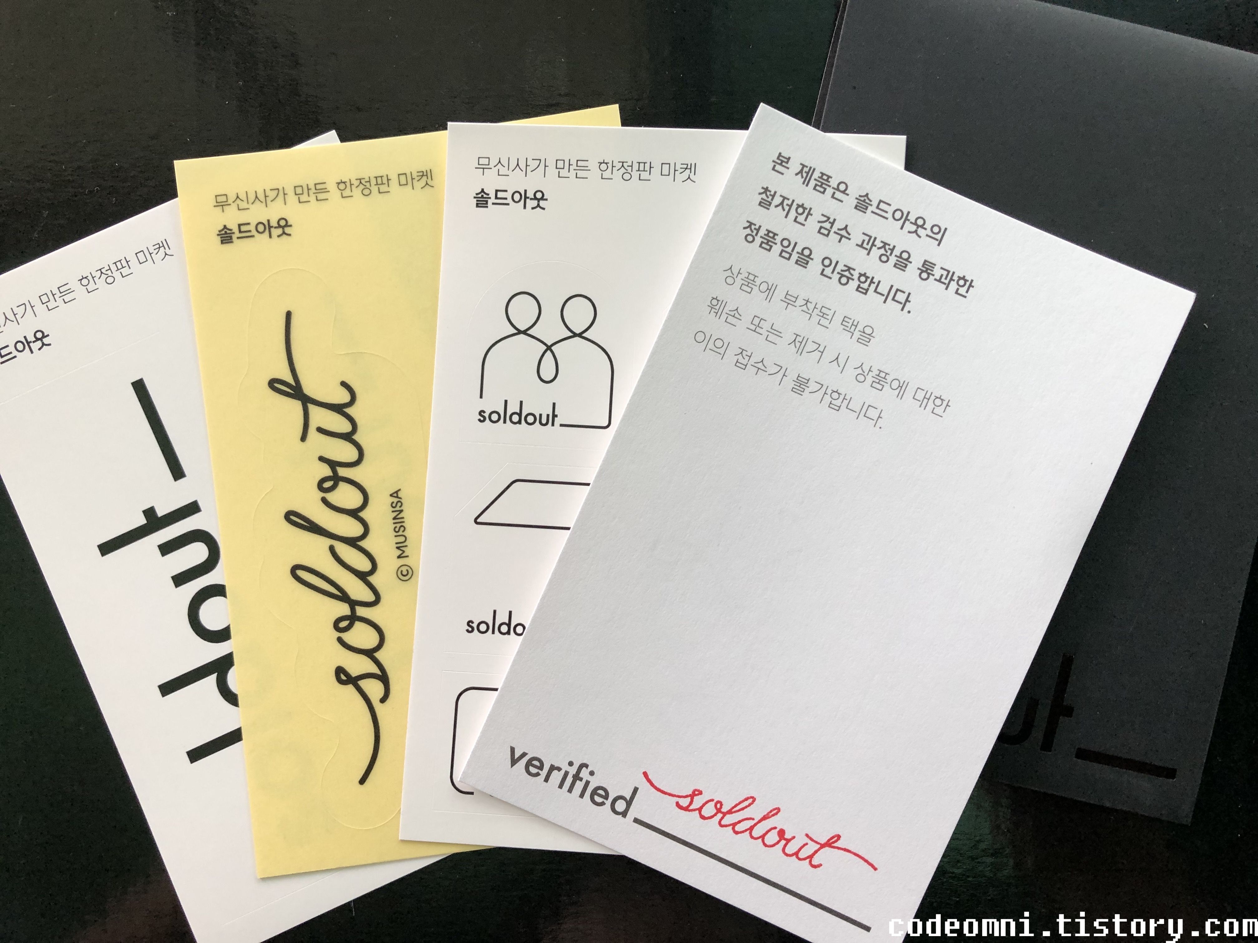 ▲ 솔드아웃 스티커와 검수 확인증입니다.