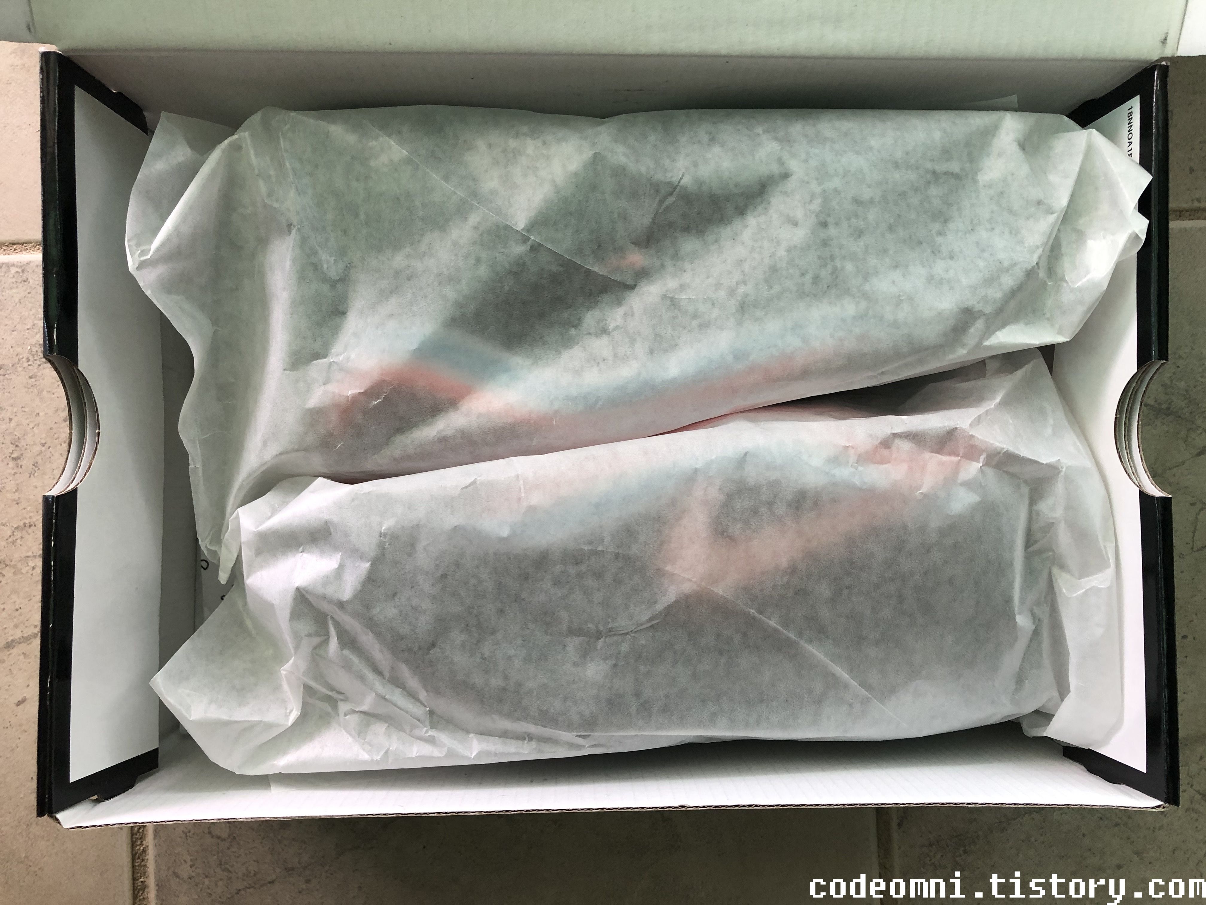 ▲ 에어 포장 후 신발 상자가 비닐로 포장되어 있습니다.