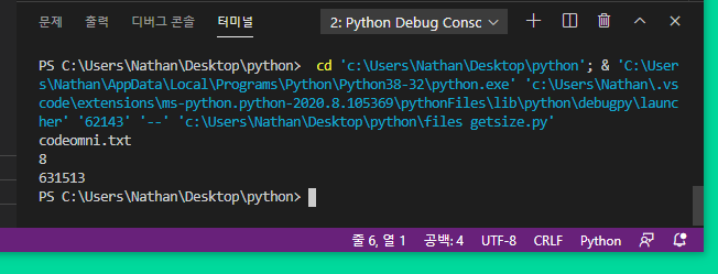 ▲ getsize() 함수를 사용해서 출력합니다.