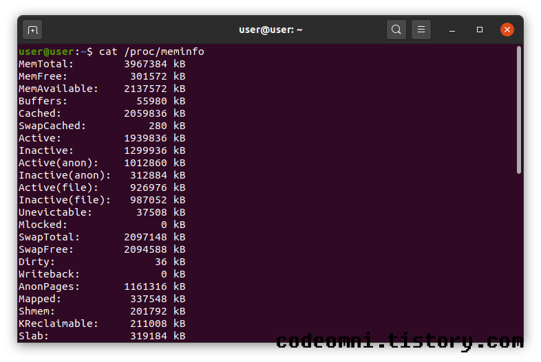 이번 포스팅은 우분투의 RAM의 정보를 확인하는 명령어입니다.