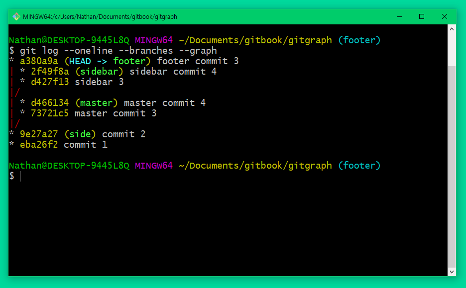 ▲ git log의 --graph 옵션을 사용합니다.