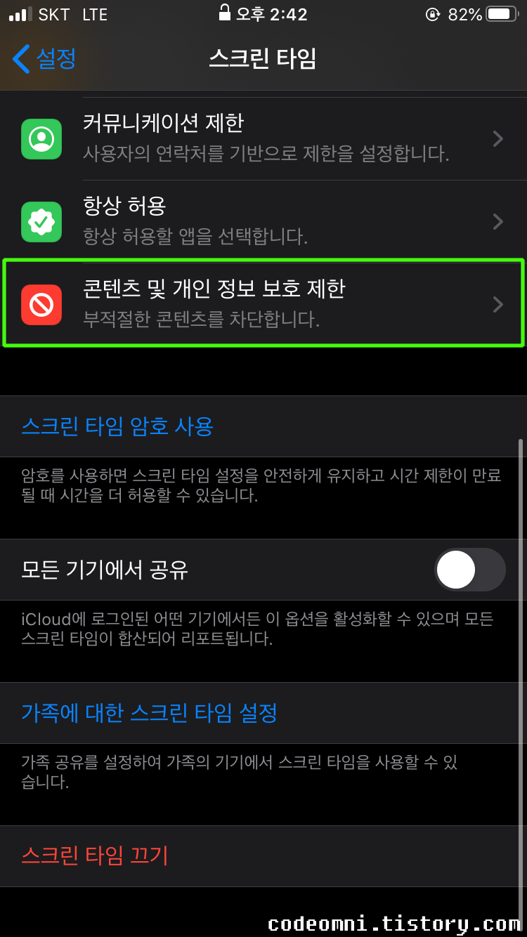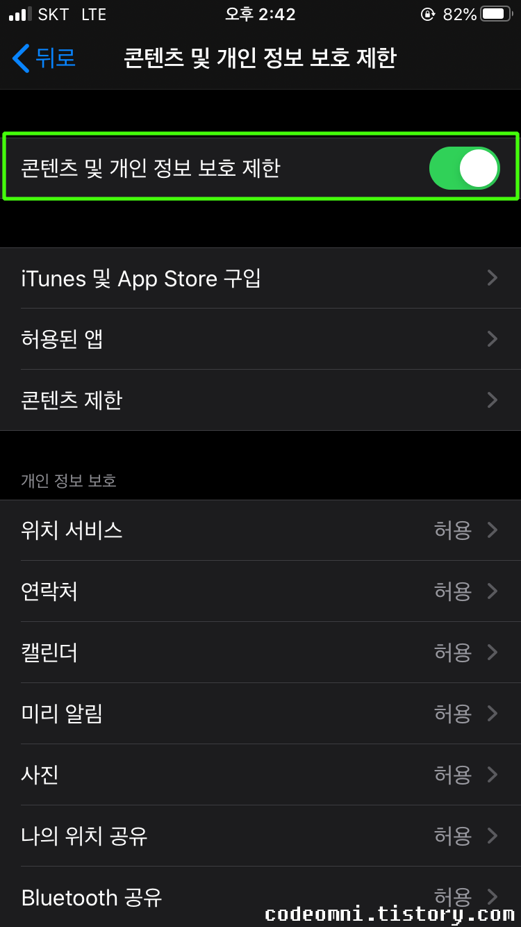 ▲ 콘텐츠 및 개인 정보 보호 제한을 터치합니다.