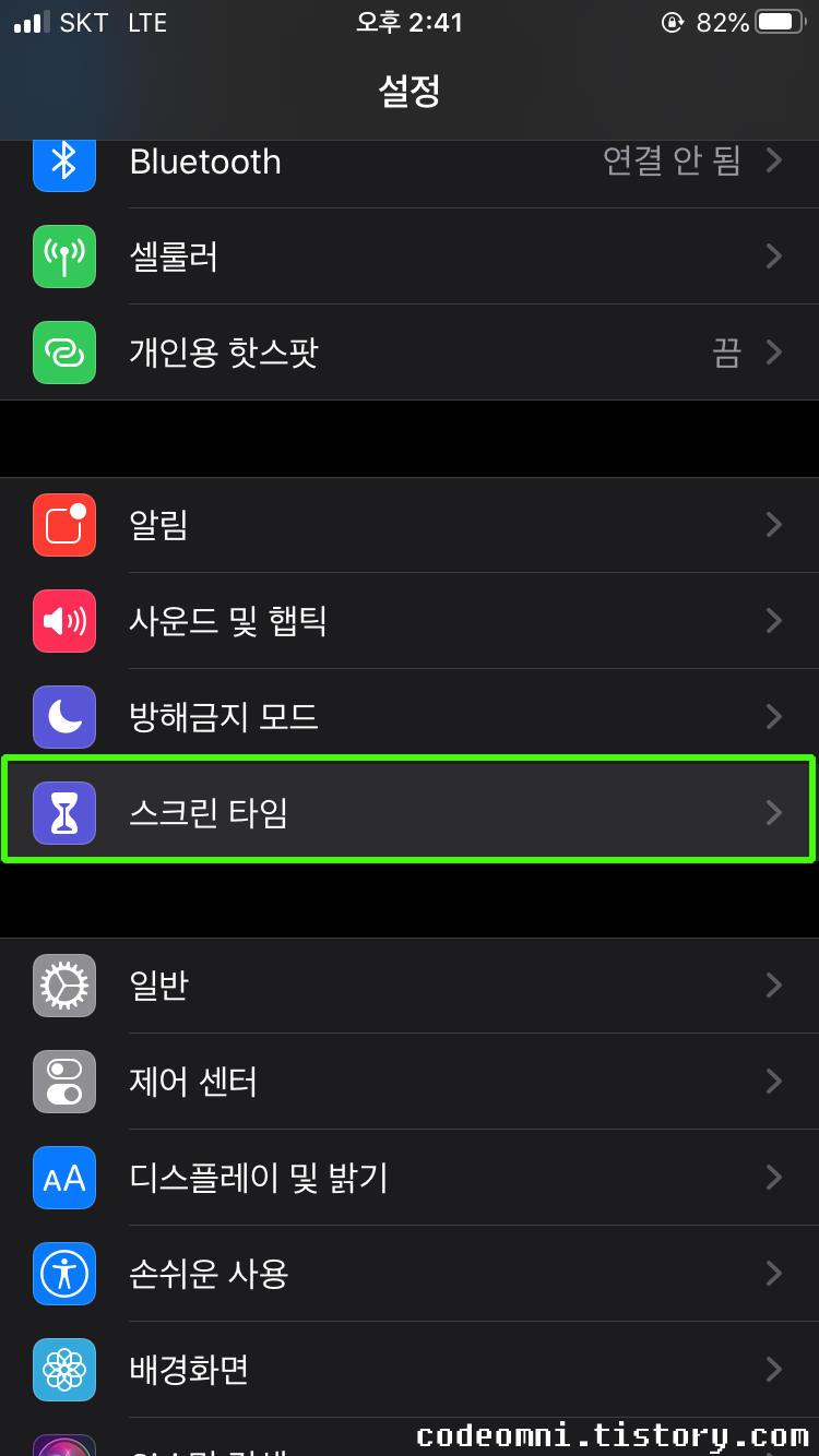 ▲ 스크린 타임을 터치합니다.