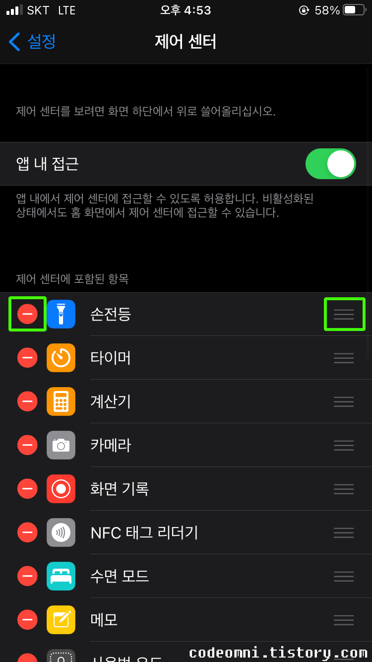 제어 센터에서 사용할 수 있는 어플을 추가, 삭제하는 방법입니다.