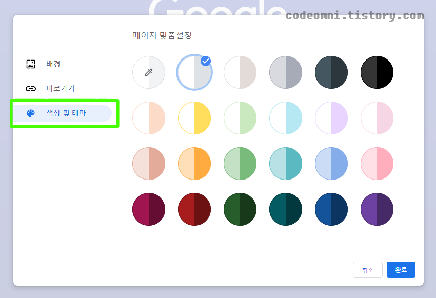 ▲ 왼쪽 탭에서 색상 및 테마을 클릭합니다.