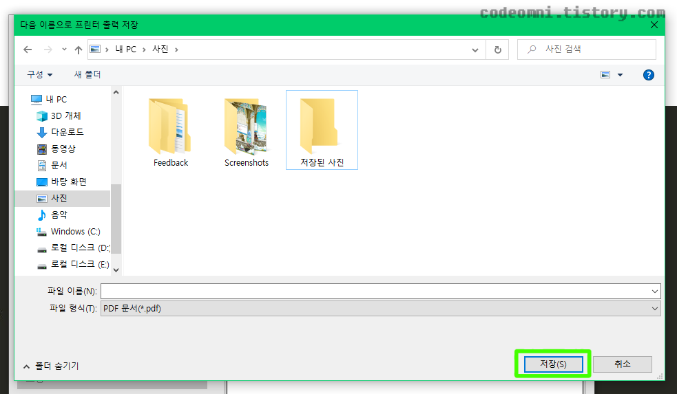▲ 사진을 저장할 위치를 선택 후 저장 버튼을 클릭합니다.