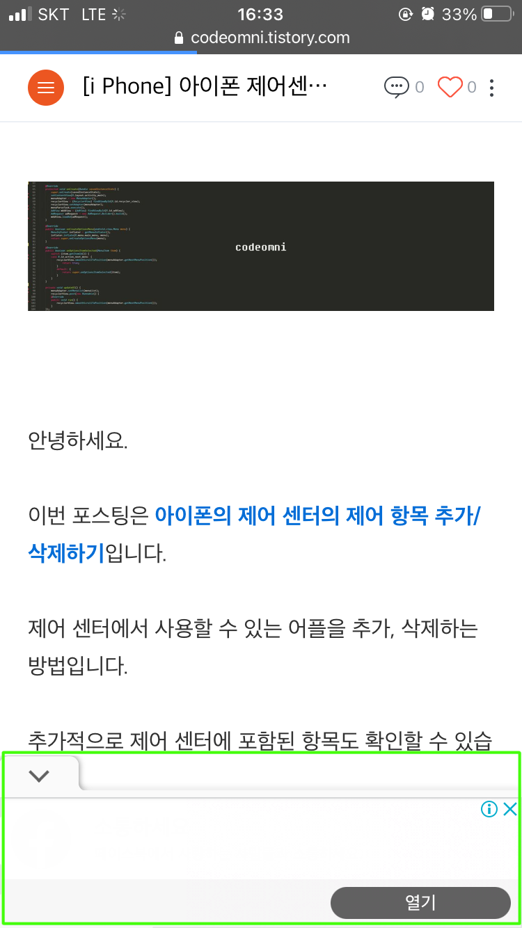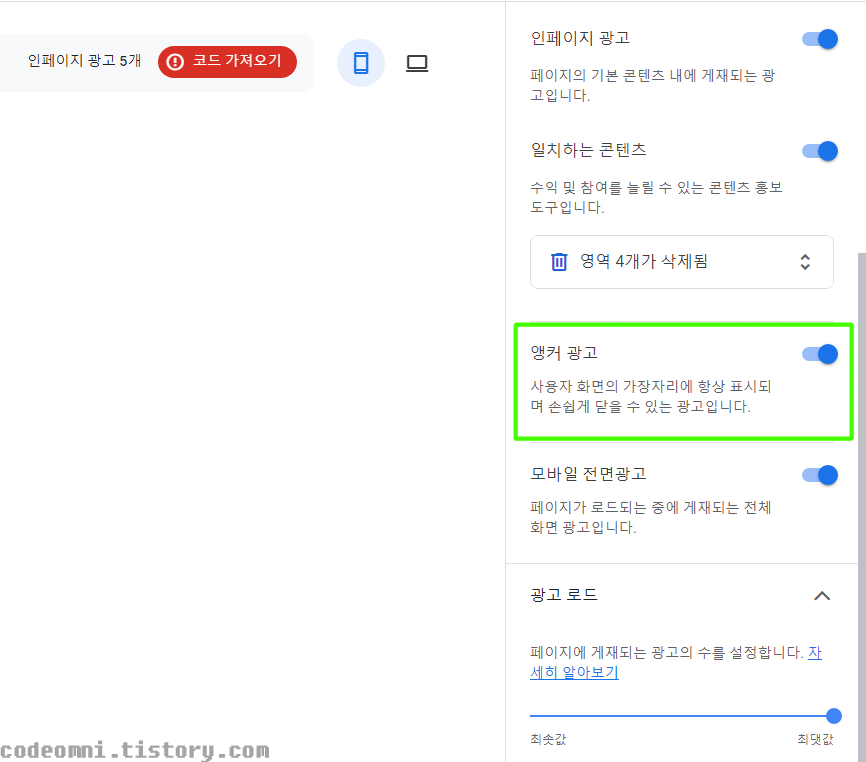 ▲ 애드센스 모바일 앵커 광고를 하단에 고정하는 방법입니다.