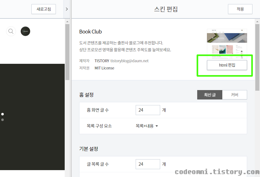 ▲ 오른쪽 상단에 있는 html 편집을 클릭합니다.