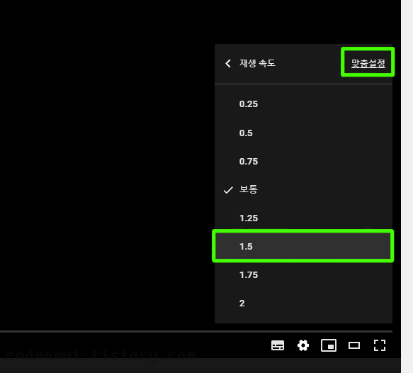 원하는 속도로 유튜브의 재생 속도를 설정합니다.