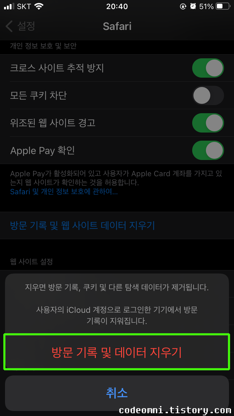 지금까지 사파리에서 검색한 모든 기록을 간편하게 지웁니다.