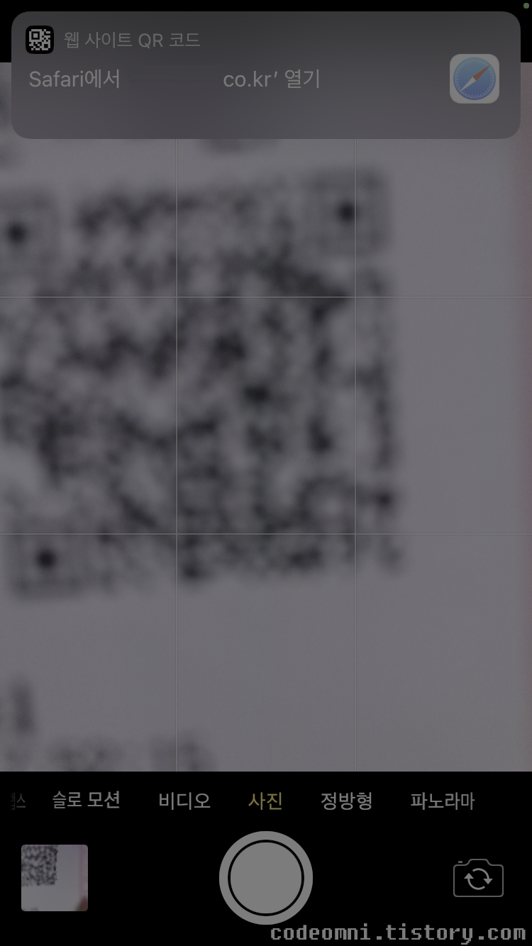 카메라 앱에서 자동으로 QR코드를 인식해서 웹 페이지를 접속할 수 있습니다.