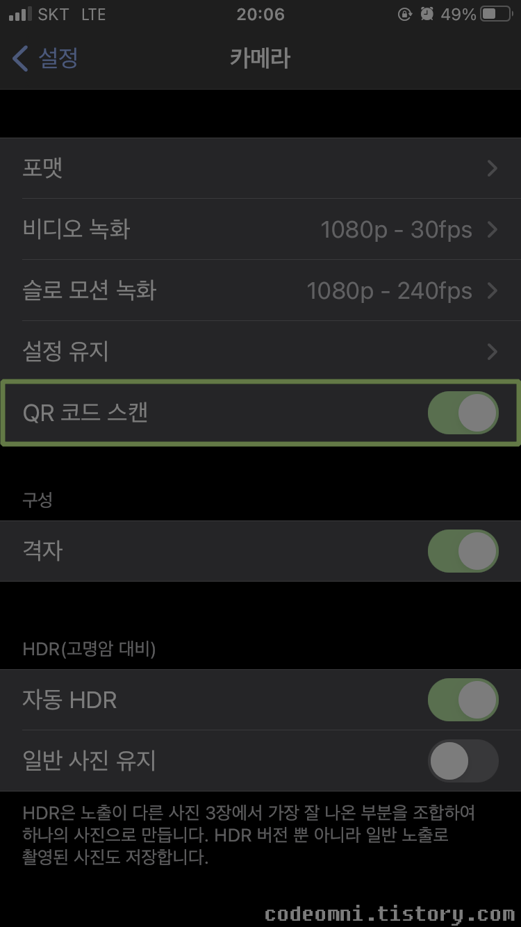이번 포스팅은 아이폰의 카메라가 QR코드 스캔 기능 켜기 끄기입니다.
