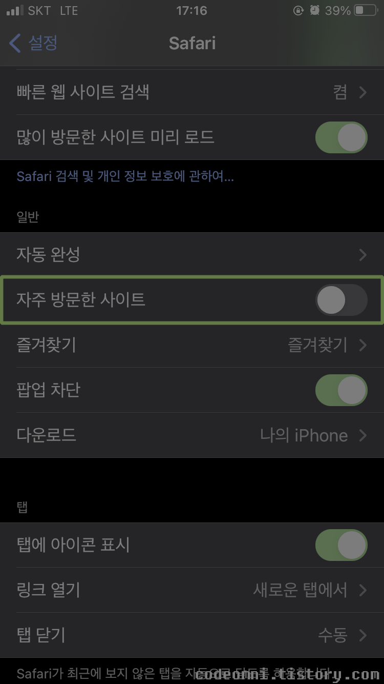 이번 포스팅은 아이폰의 사파리에서 자주 방문한 사이트 숨기기입니다.