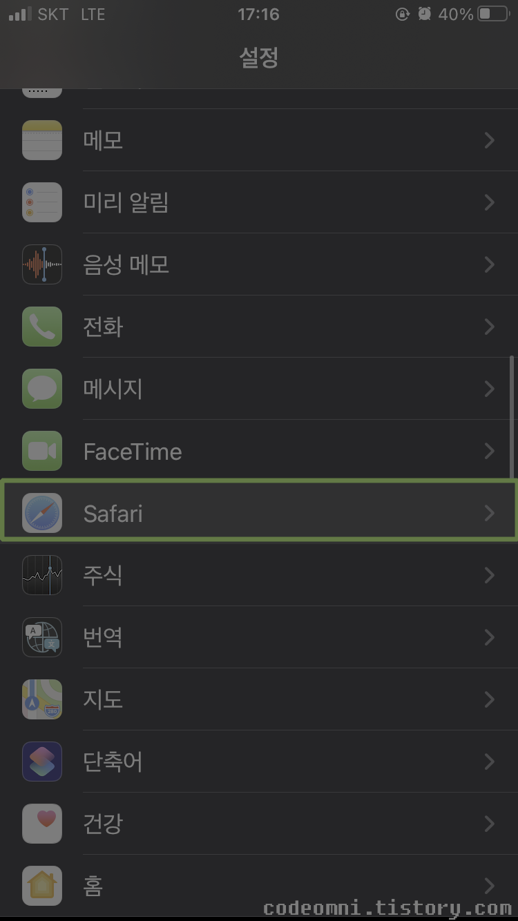 ▲ 설정에서 Safari를 터치합니다.