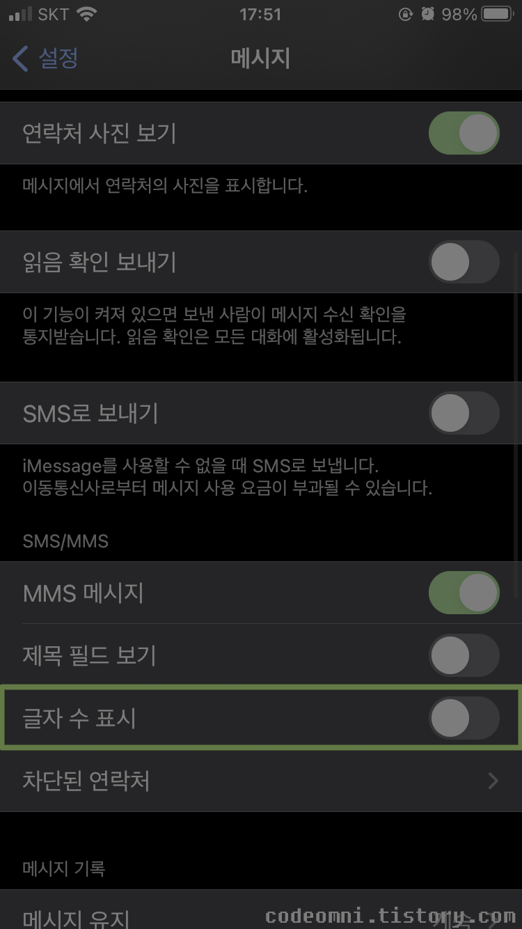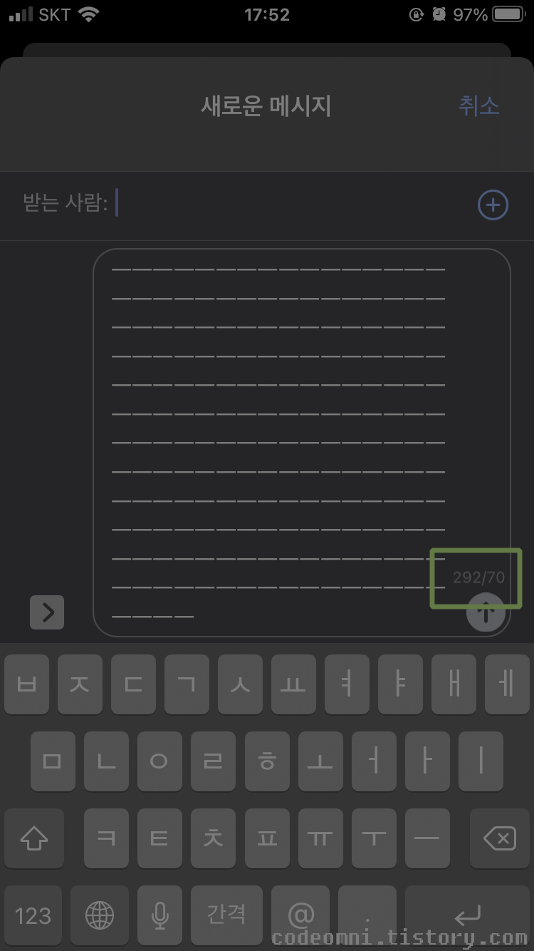 이번 포스팅은 아이폰의 메시지의 작성된 글자 수 표시하기입니다.