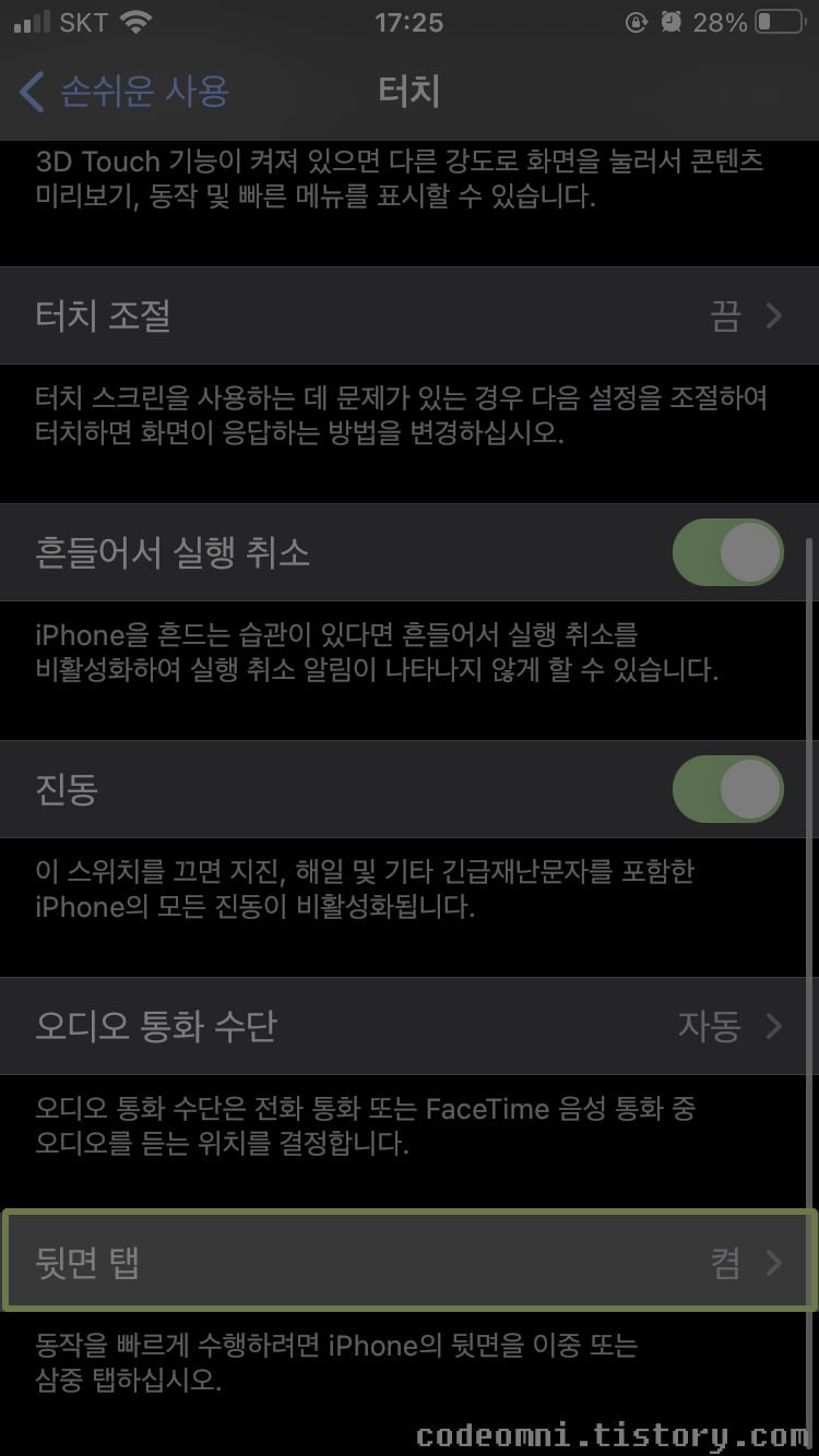 이번 포스팅은 아이폰의 뒷면 탭 사용하기입니다.
