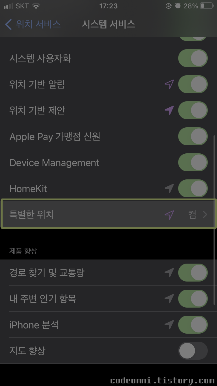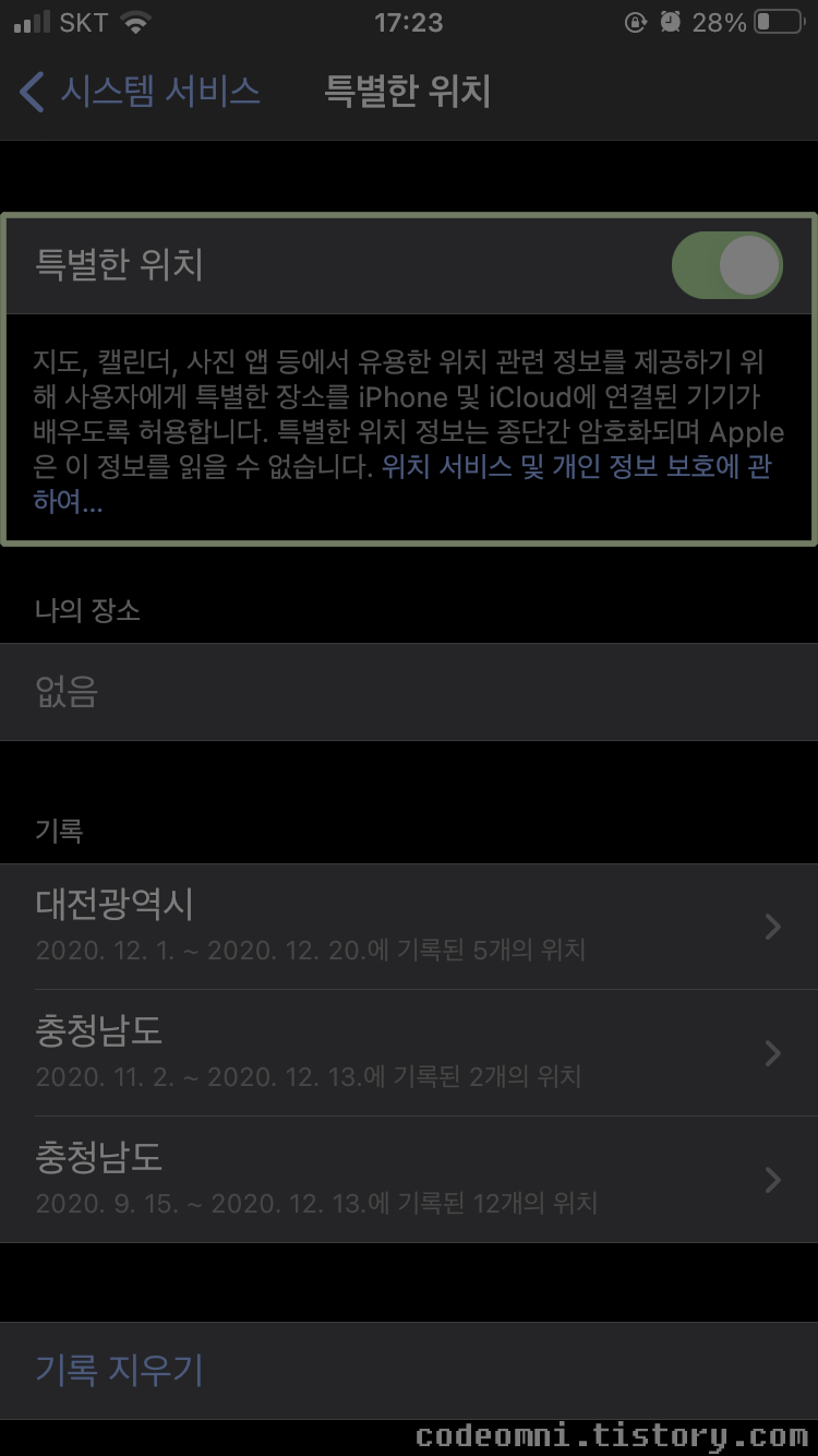 이번 포스팅은 아이폰의 특별한 위치 끄기 켜기입니다.