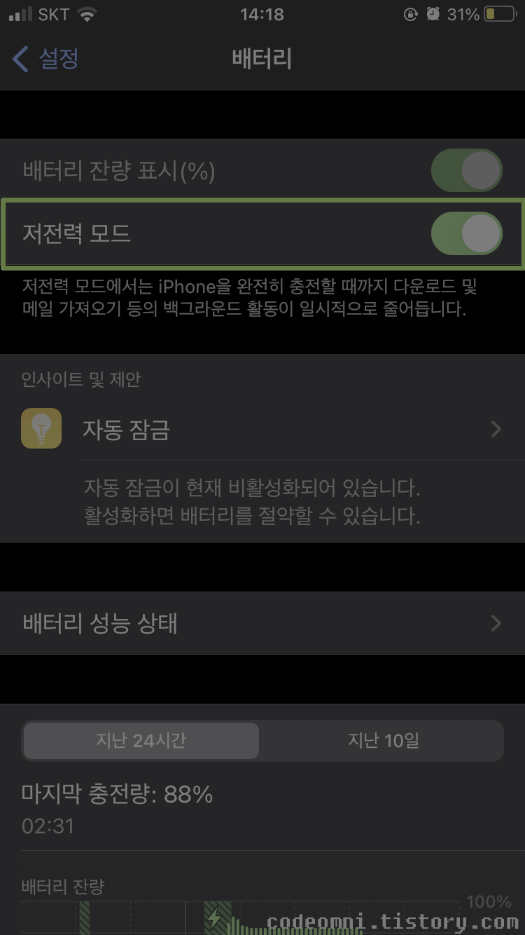 이번 포스팅은 아이폰의 배터리에서 저전력 모드 사용하기입니다.