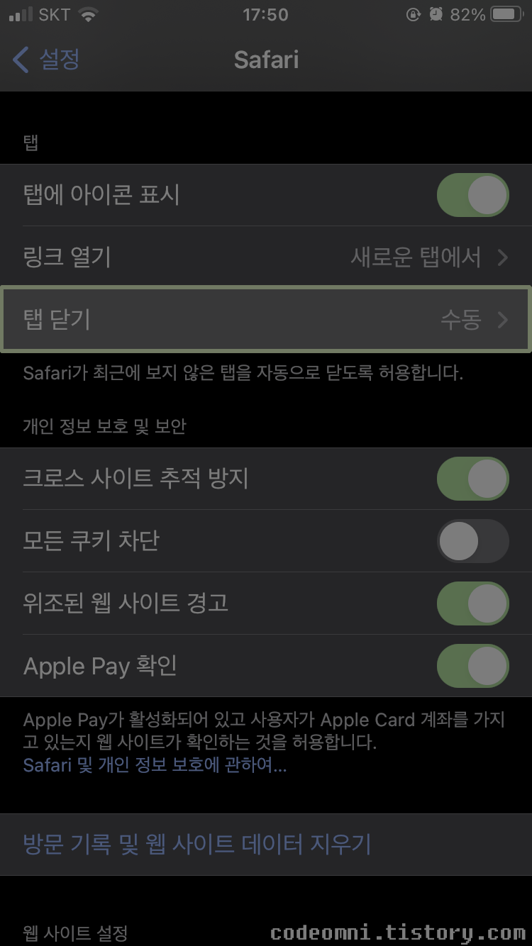 이번 포스팅은 아이폰의 사파리에서 자동 탭 닫기입니다.