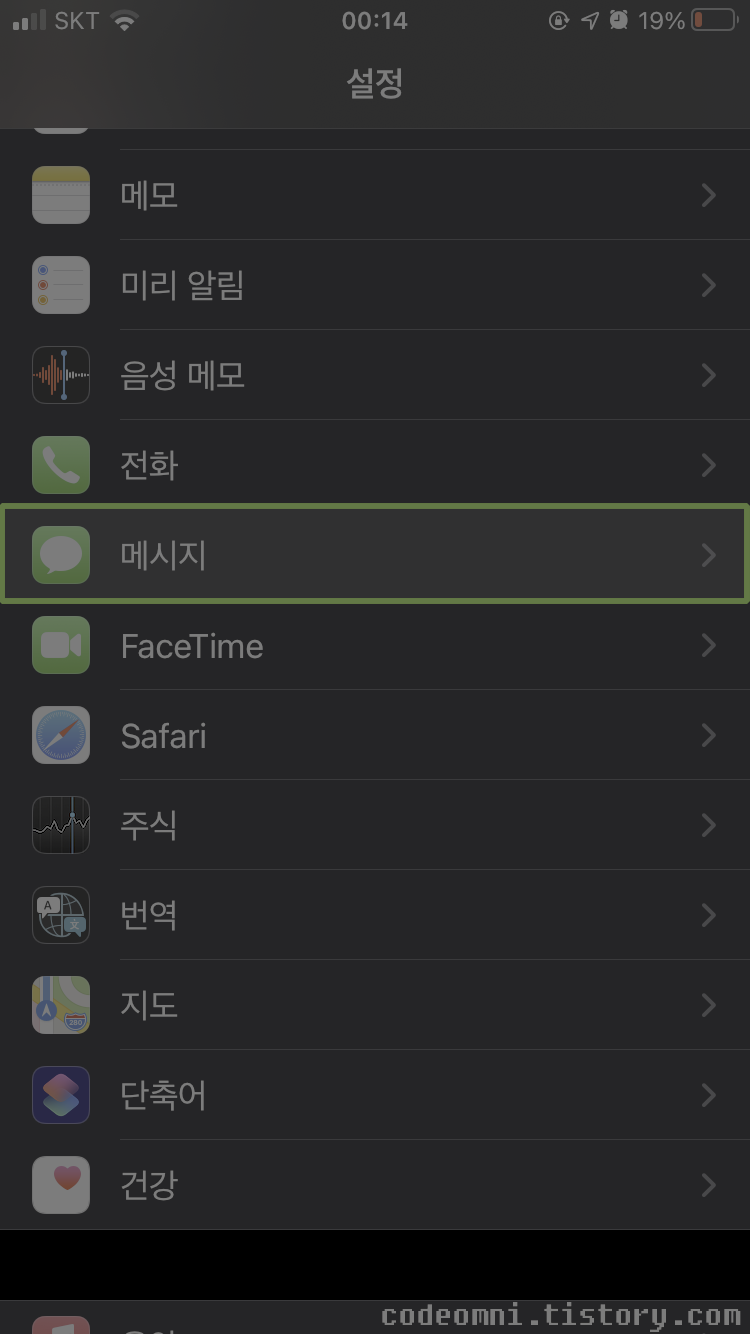 ▲ 설정에서 메시지를 터치합니다