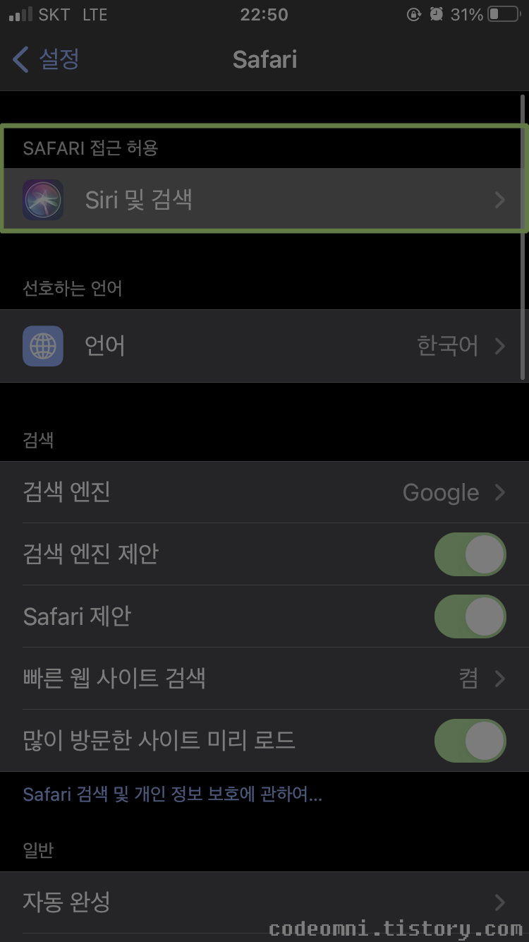 이번 포스팅은 아이폰의 사파리에서 시리 제안 끄기 켜기입니다.