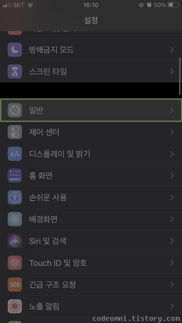 ▲ 설정에서 일반을 터치합니다