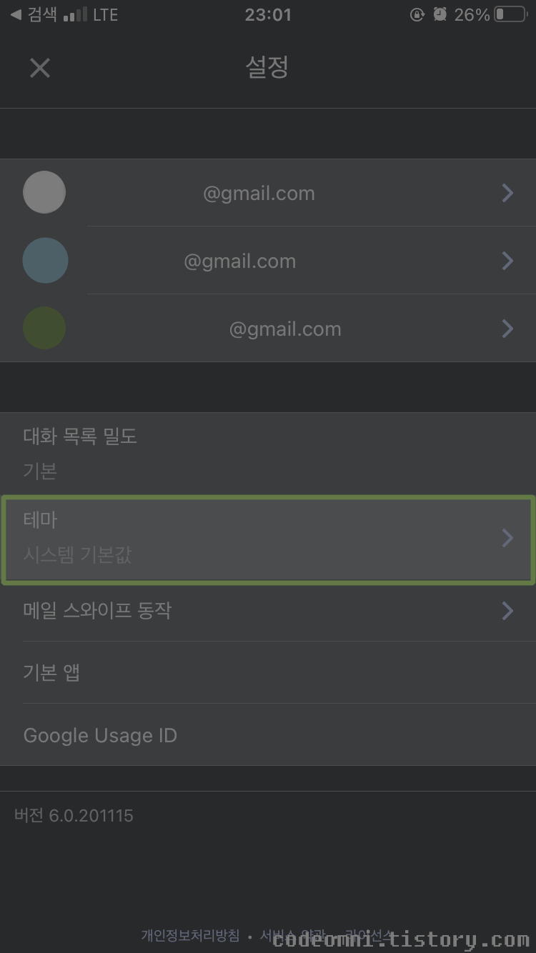 이번 포스팅은 지메일 앱의 테마 변경하기입니다.