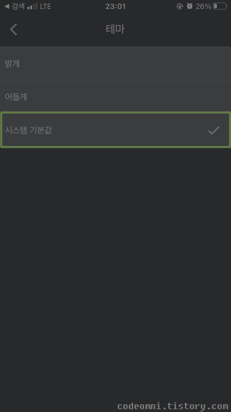 시스템 기본값, 밝게, 어둡게 변경합니다.