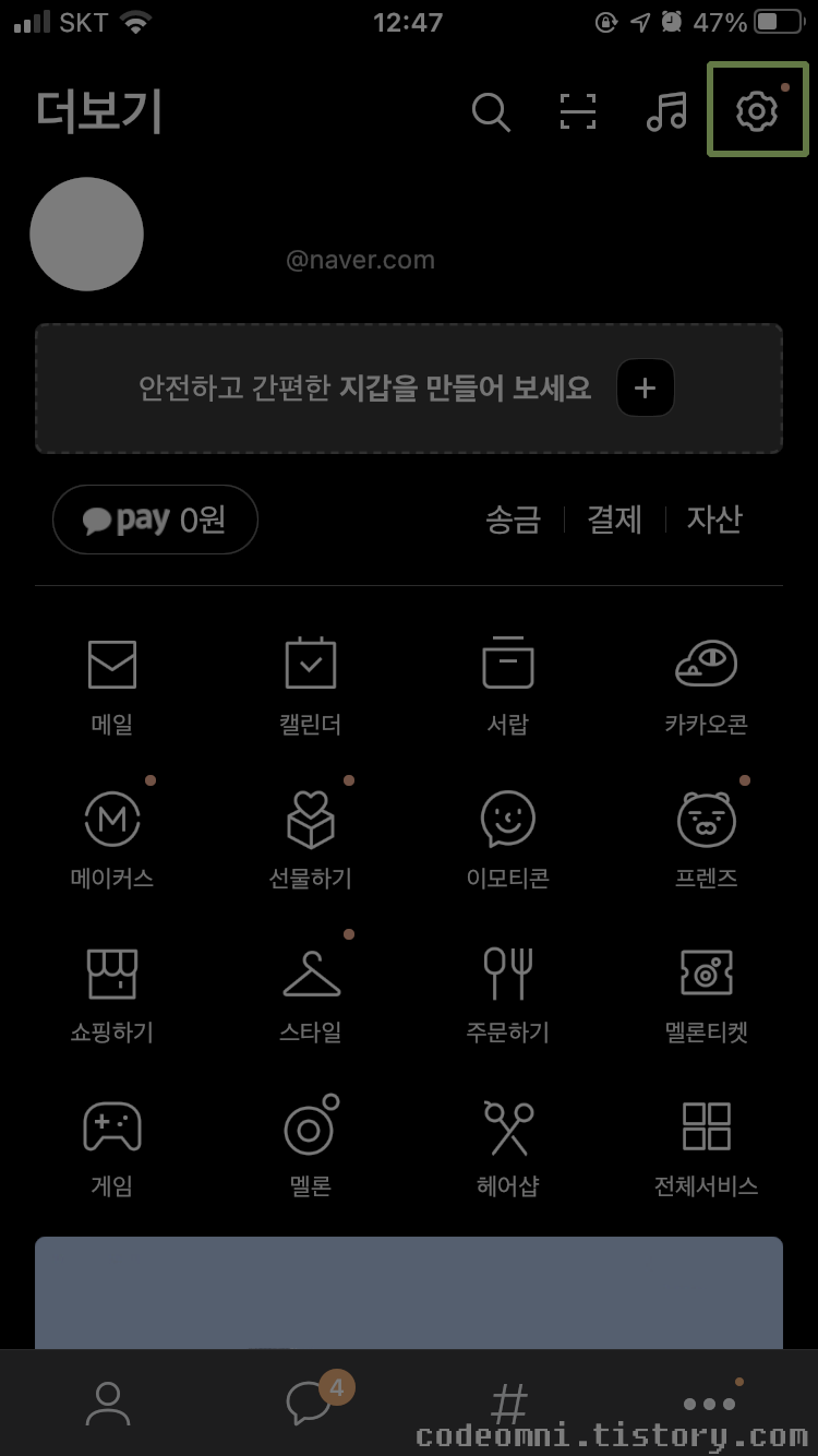 ▲ 오른쪽 상단에서 설정 아이콘을 터치합니다.