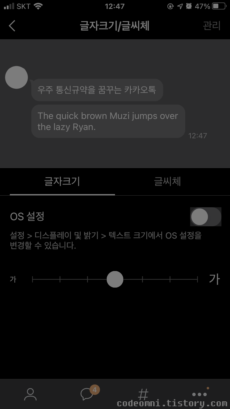 이번 포스팅은 카카오톡 앱의 글자크기 및 글씨체 변경하기입니다.